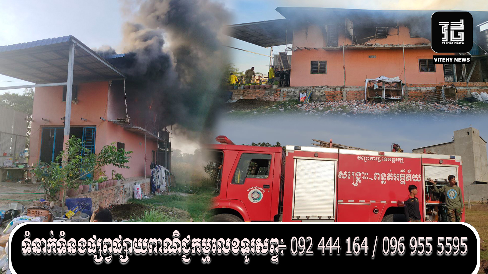ខេត្តកណ្តាល៖ ថ្ងៃចូលឆ្នាំចិន អគ្គិភ័យឆាបឆេះលេបត្របាក់ផ្ទះមួយខ្នង យ៉ាងសន្ធោសន្ធៅ បង្កការភ្ញាក់ផ្អើល ទាំងព្រឹកព្រលឹម ដល់បងប្អូនប្រជាពលរដ្ឋ និងសមត្ថកិច្ច ប្រញាប់ហៅរថយន្តពន្លត់អគ្គិភ័យ ចុះមកបាញ់ពន្លត់ ។