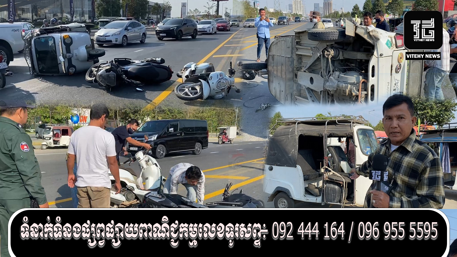 តាមប្រភពព័ត៌មាន បានឲ្យដឹងថា មុនពេលកើតហេតុ រម៉កកង់បីឥណ្ឌាខាងលើ បានខូចក៏បានហៅរម៉កមួយគ្រឿងទៀតមកសណ្តោង ដោយធ្វើដំណើរតាមបណ្តោយផ្លូវខាងលើ ក្នុងទិសដៅពីត្បូងមកជើងឡើង ឆ្ពោះឡើងមកក្បាលថ្នល់ លុះដល់ចំណុចកើតហេតុ ស្រាប់តែដាច់ខ្សែសណ្តោង បោលកង់បីឥណ្ឌា មកបុកម៉ូតូ ADV ពណ៌ខ្មៅ ពាក់ផ្លាកលេខ ភ្នំពេញ 1KS-1841 រួចម៉ូតូADVនោះ ក៏ខ្ទាតទៅបុកប៉ះជាមួយនឹងម៉ូតូស្កុបពីមួយគ្រឿងទៀត ពណ៌ស ពាក់ផ្លាកលេខ តាកែវ 1X-9494 បណ្តាលឲ្យក្រឡាប់ និងដួលរណូករណែល ទាំង៣គ្រឿងលើផ្លូវ៦០ម៉ែត្រ សំណាងណាស់ ដែលមនុស្សគ្រាន់តែរបួសស្រាល ។