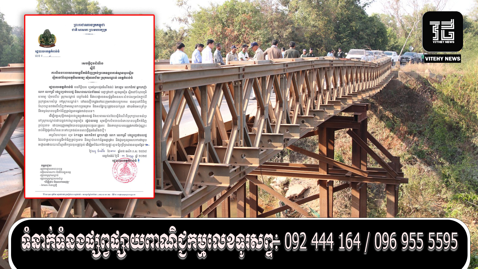 អាស្រ័យហេតុនេះ សូម ឯកឧត្តម លោកជំទាវ អ្នកឧកញ៉ា លោកឧកញ៉ា លោក លោកស្រី បងប្អូនប្រជា ពលរដ្ឋដែលជាម្ចាស់យានយន្តដឹកទំនិញគ្រប់ប្រភេទ និងស្ថាប័នពាក់ព័ន្ធមេត្តាជ្រាប និងជួយចូលរួមសហការ ជាមួយអាជ្ញាធរដោយឈរលើស្មារតីទទួលខុសត្រូវខ្ពស់ ដើម្បីរួមចំណែកថែរក្សាផ្លូវ ស្ពានឱ្យប្រើប្រាស់បានយូរអង្វែង ។