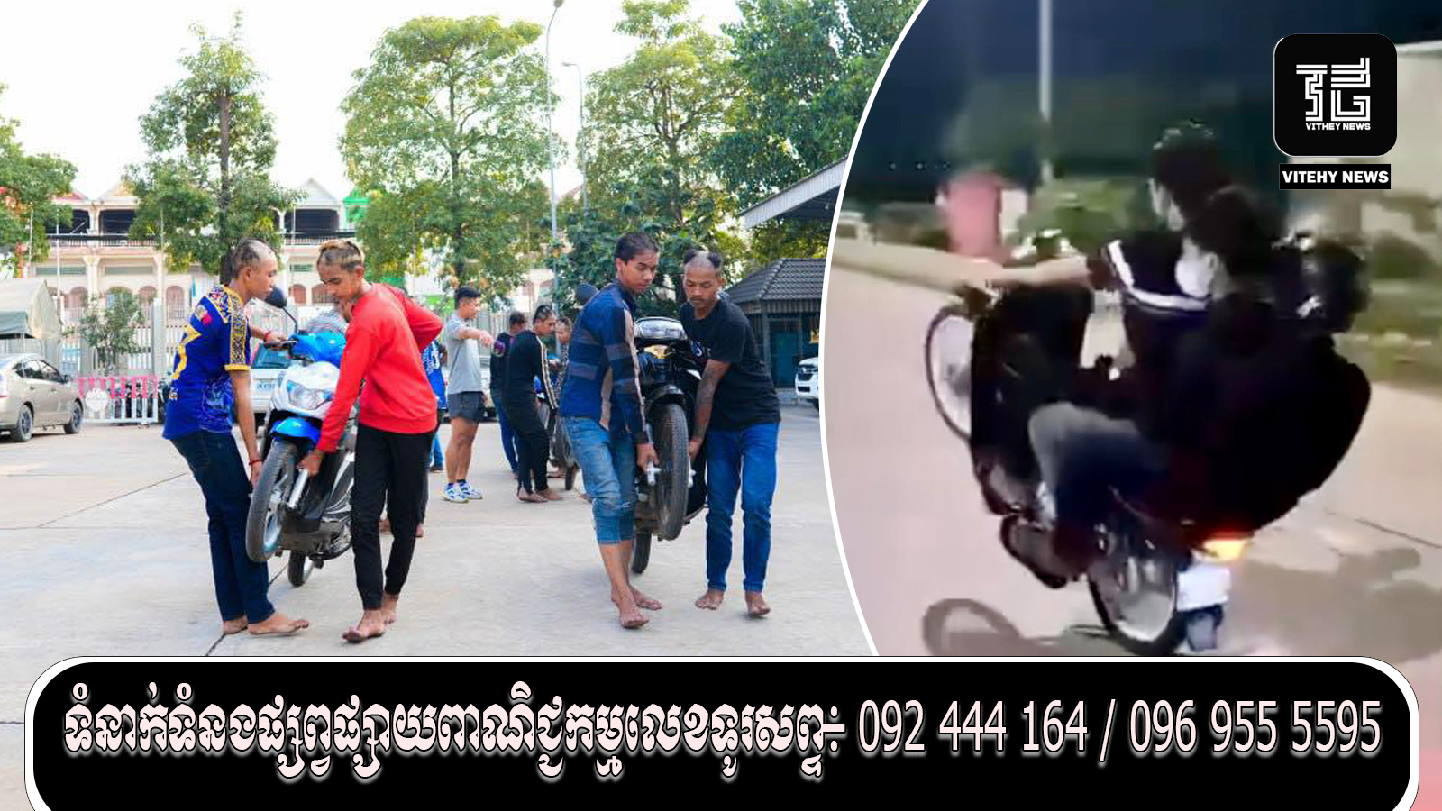 កាលពីវេលាម៉ោង ០១និង២០នាទី រំលងអាធ្រាតឈានចូល ថ្ងៃទី០៣ ខែកុម្ភៈ ឆ្នាំ២០២៥ កម្លាំងអាវុធហត្ថរាជធានីភ្នំពេញ ក្នុងខណ្ឌជ្រោយចង្វារ បានធ្វើការល្បាតដើម្បី បង្ការ បង្រ្កាបក្រុមក្មេងទំនើងក្នុងភូមិសាស្រ្តខណ្ឌ ជាលទ្ធផល បានឃាត់ខ្លួនក្រុមក្មេងទំនើងបានចំនួន ១៥នាក់ (ស្រី១នាក់) ដែលធ្វើសកម្មភាពជាក្រុម បង្ហោះម៉ូតូតាមផ្លូវសាធារណៈ នៅចំណុចផ្លូវបេតុង ភូមិព្រែកតារ័ត្ន សង្កាត់ព្រែកតាសេក ខណ្ឌជ្រោយចង្វារ រាជធានីភ្នំពេញ។ ក្មេងទំនើងទាំងនេះ ត្រូវបញ្ជូនបន្តទៅកាន់ទីបញ្ជាការ កងរាជអាវុធហត្ថរាជធានីភ្នំពេញ ដើម្បីធ្វើការអប់រំ ក្នុងនោះក្មេងទំនើង១៤នាក់ ត្រូវដាក់វិន័យរដ្ឋបាល ដោយកោសក់ហាត់កីឡា លើកម៉ូតូដើរក្នងទីបញ្ជាការដោយស្រែកថា "ខ្ញុំក្មេងទំនើងបង្ហោះម៉ូតូ កុំយកតម្រាប់តាមខ្ញុំ ពីពេលនេះទៅ ខ្ញុំឈប់បង្ហោះម៉ូតូហើយ" ព្រមទាំងដកហូតម៉ូតូ០៧គ្រឿង រក្សាទុក ០៣ខែ ផងដែរ។