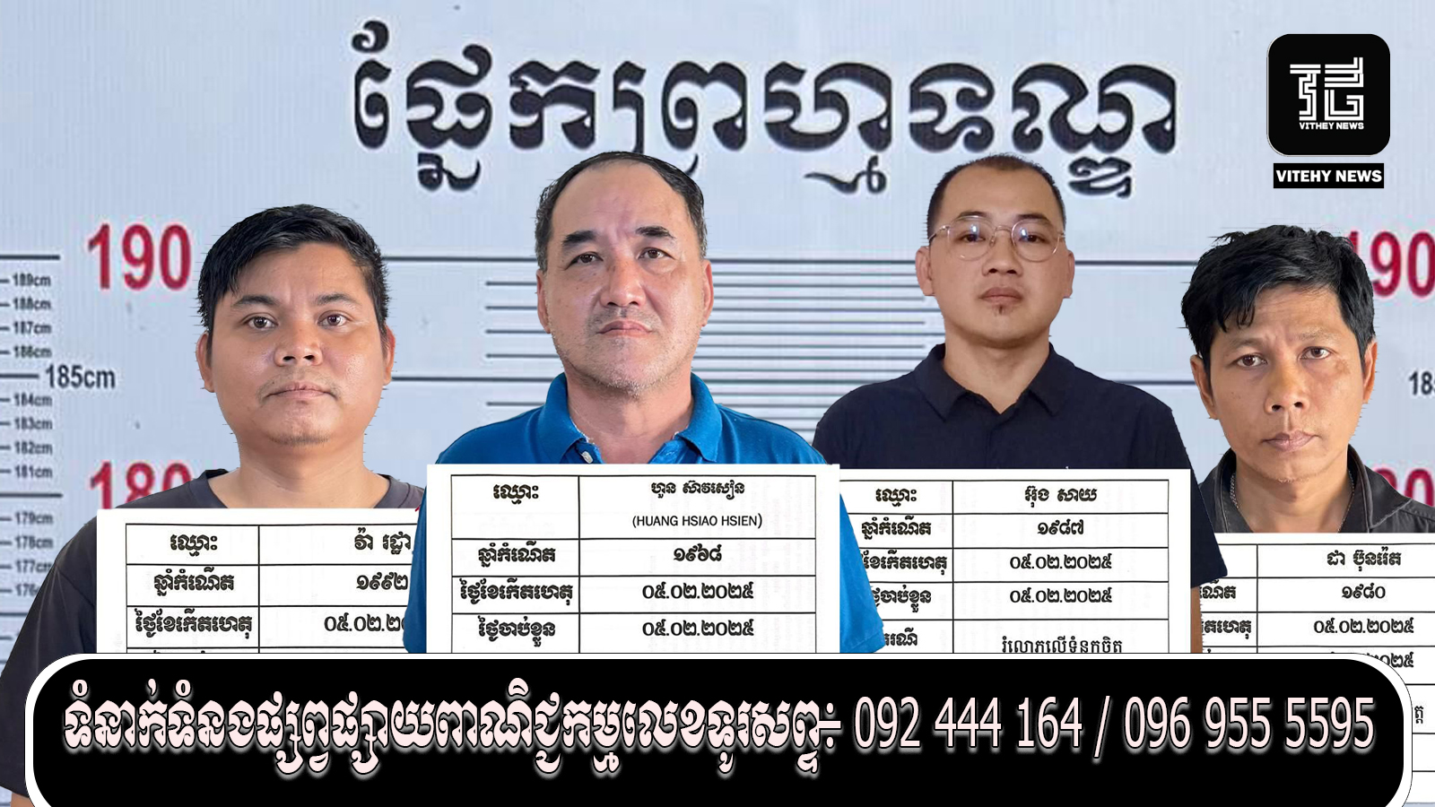 ១.ឈ្មោះ ហួន ស៊ាវសៀន (HUAN HSIAO HSIEN)ភេទប្រុស(ជនជាតិចិនតៃវ៉ាន់) បច្ចុប្បន្នស្នាក់នៅភូមិក្រាំងចេក ឃុំដើមឫស ស្រុកកណ្ដាលស្ទឹង ខេត្តកណ្ដាល មុខរបរ អ្នកគ្រប់គ្រងរោងចក្រ(ឃាត់ខ្លួន)។