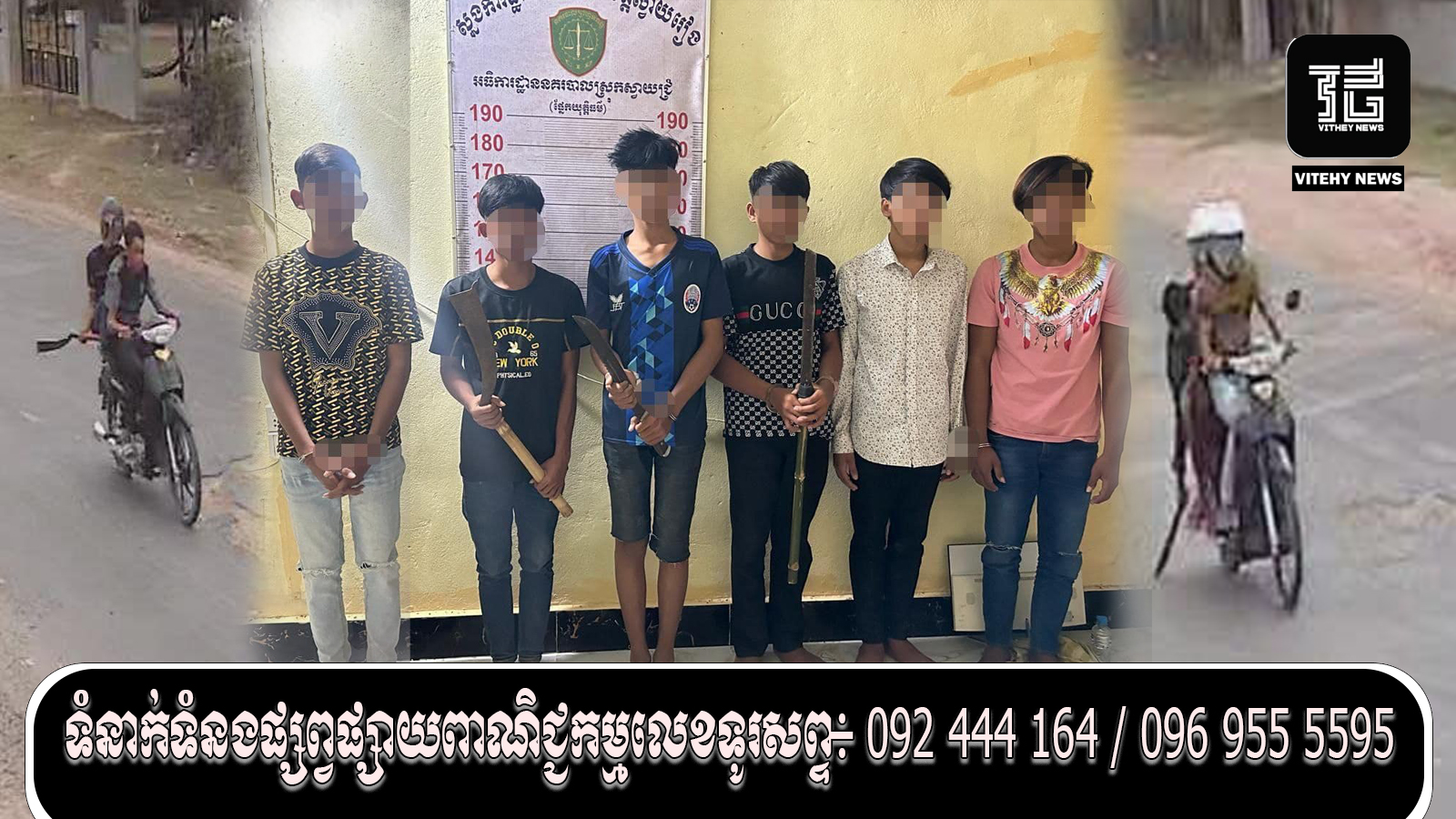 ឲ្យផ្គើនដឹងតែគុ.កហើយ! ក្មេងទំនើង ជិះម៉ូតូកាន់ដាវ និងកាំបិតអូសតាមផ្លូវនៅស្វាយរៀង សមត្ថកិច្ចក្របួចបាន ០៦នាក់!
